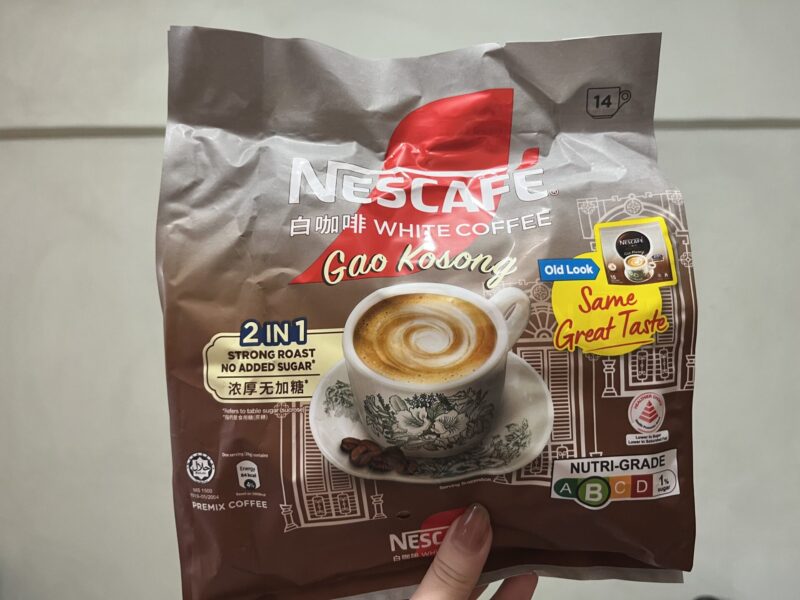 ブランドはネスカフェですが、味は日本のそれとちょっと違ってちゃんと「ホワイトコーヒー(シンガポールのローカルのコーヒー)の味がする。