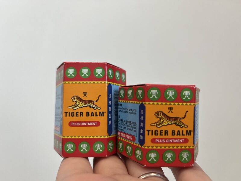 肩こり、関節痛に塗るとすーっとして、痛みが緩和できるタイガーバーム。